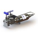 To perform a pycnometer flash the pycnometer is evacuated and weighted. It is then connected to a hydrocarbon sampling cylinder like the One Phase™ Sampling Cylinder or Piston Type Sample Cylinder. A portion of the oil sample is transferred from the cylinder into the pycnometer using the Positive Displacement Pump. The pycnometer is removed from the sampling cylinder and connected to an evacuated gasometer via a liquid trap.